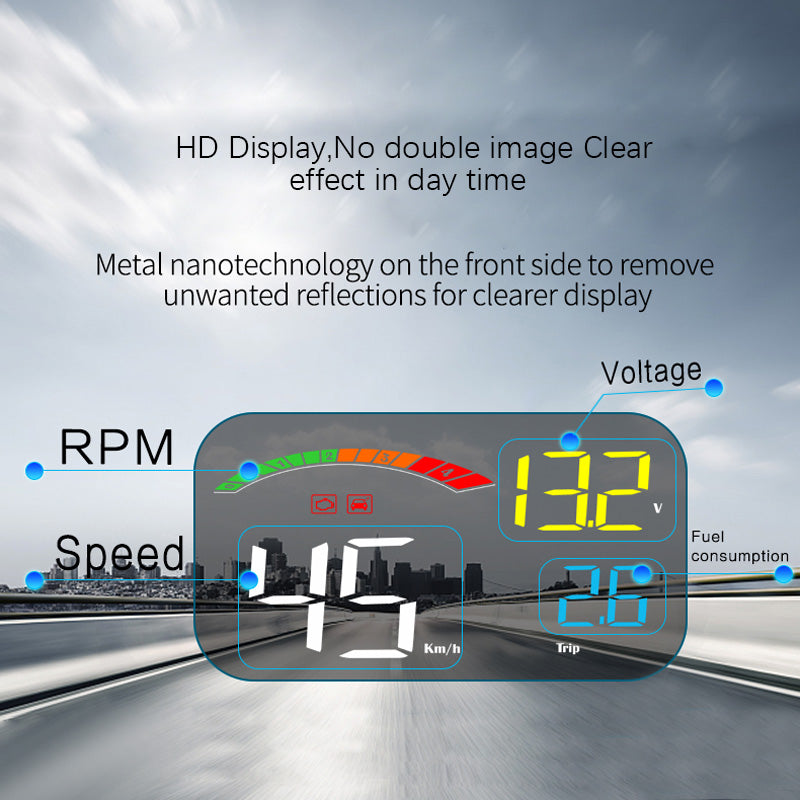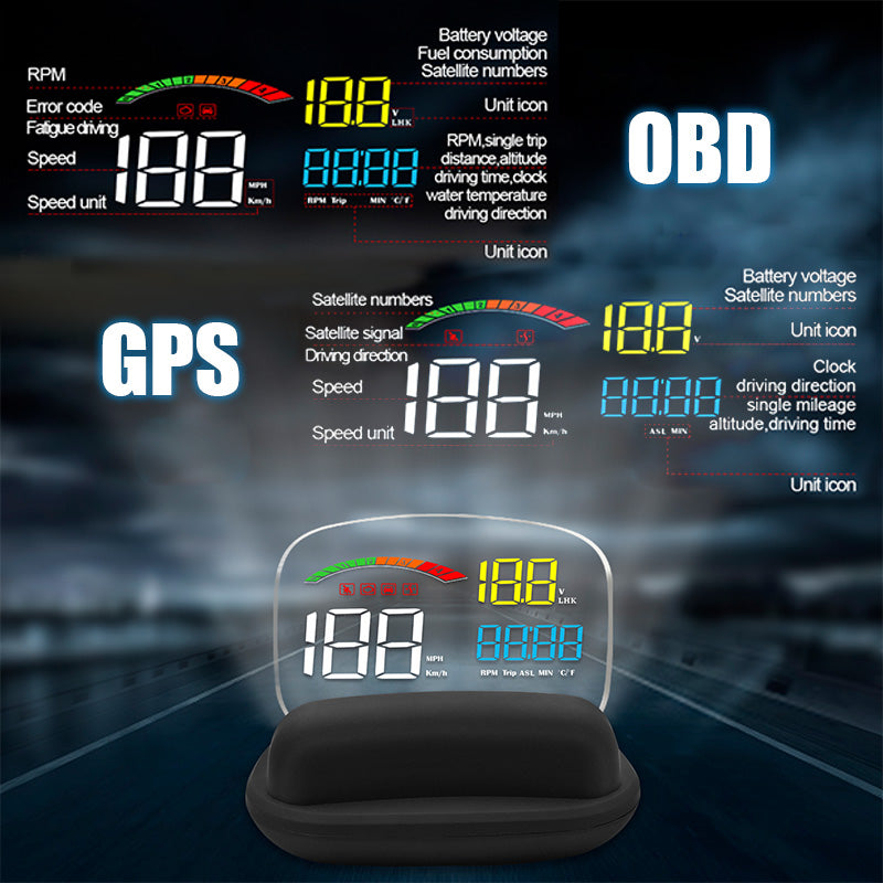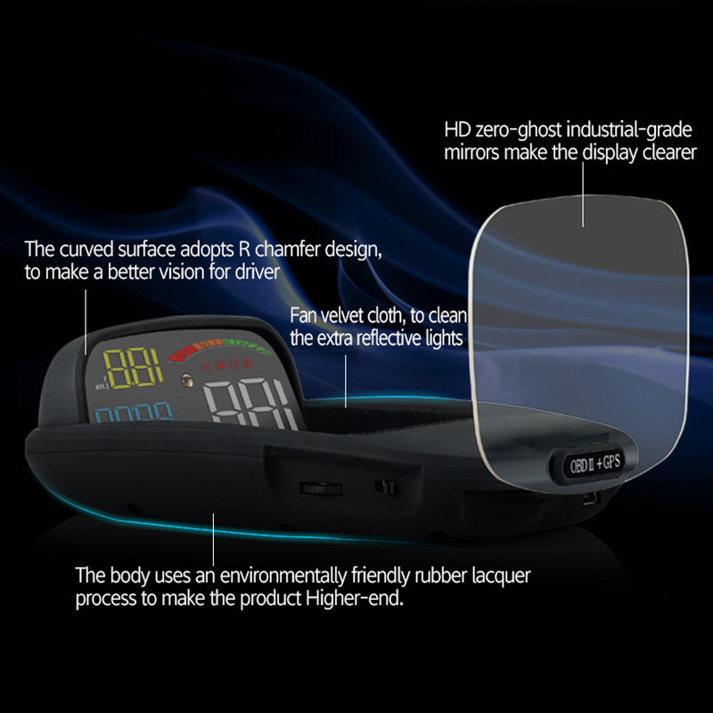 This fully compatible dual-system heads-up display supports one-touch quick switching to provide relevant information and data from both OBD2 and GPS systems in a user-friendly manner. This may include information such as vehicle speed, engine RPM, fuel consumption, navigation instructions, etc.